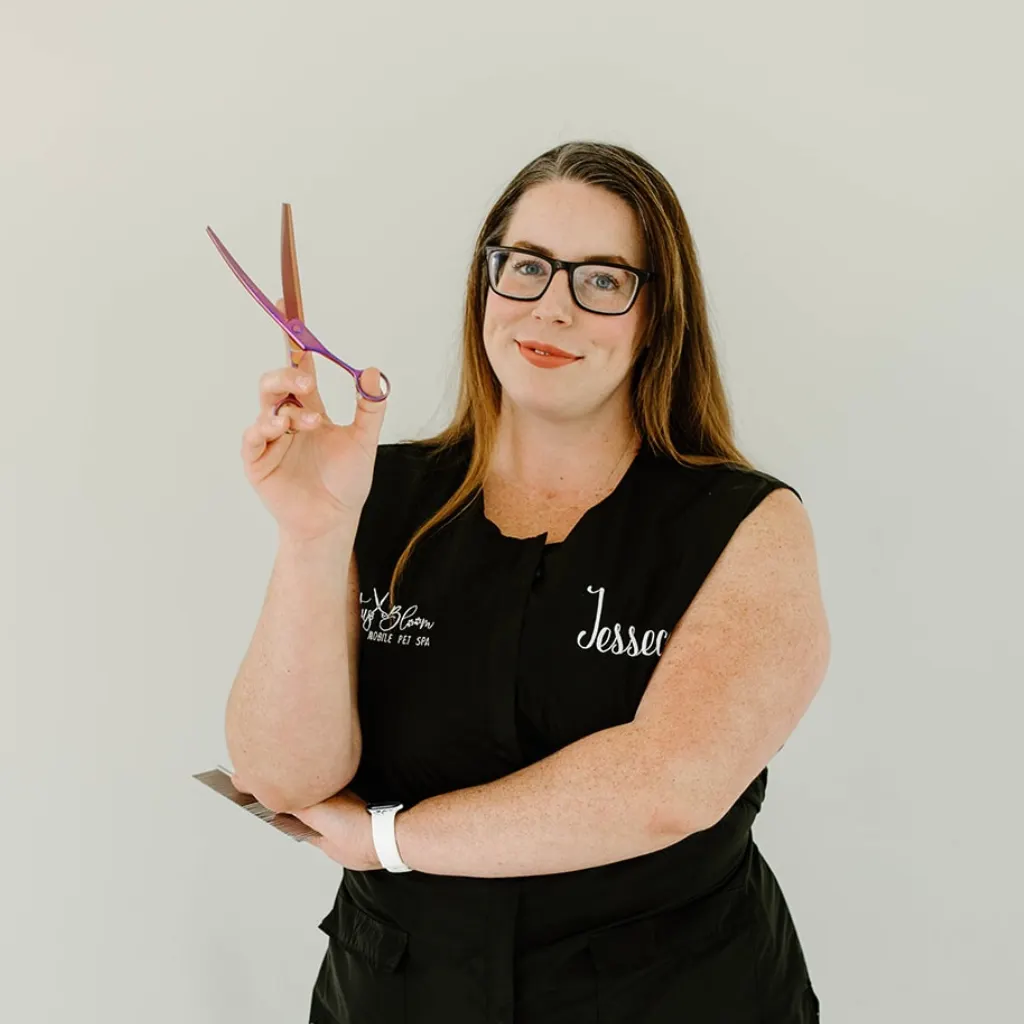Jesseca has been grooming since 2021 and brings a calm, caring touch to every pup she works with. She specializes in bath pups and neaten-up trims and loves working with Goldens, Aussies, and bulldogs.